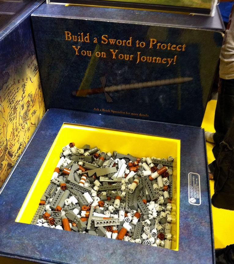 Les enfants peuvent se livrer à une sorte de chasse au trésor dans tout le magasin et participer à un tirage au sort gagner un set de la gamme LEGO Lord of the Rings. Tout commence avec une carte qui lance l'opération, il faut ensuite construire une épée à partir d'un vrac en reproduisant le modèle présenté et partir à la recherche de l'Uruk-Hai caché dans le magasin.