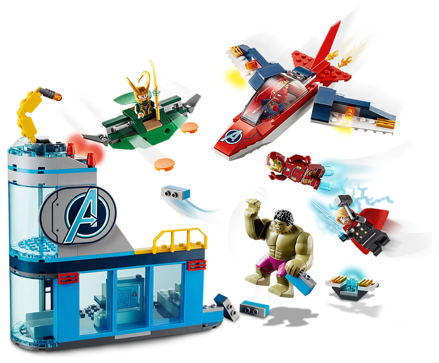 Il nous restera la pièce tampographiée fixée sur la façade de la tour et les minifigs de Loki, Captain Marvel, Hulk, Thor et Iron Man pour nous consoler...