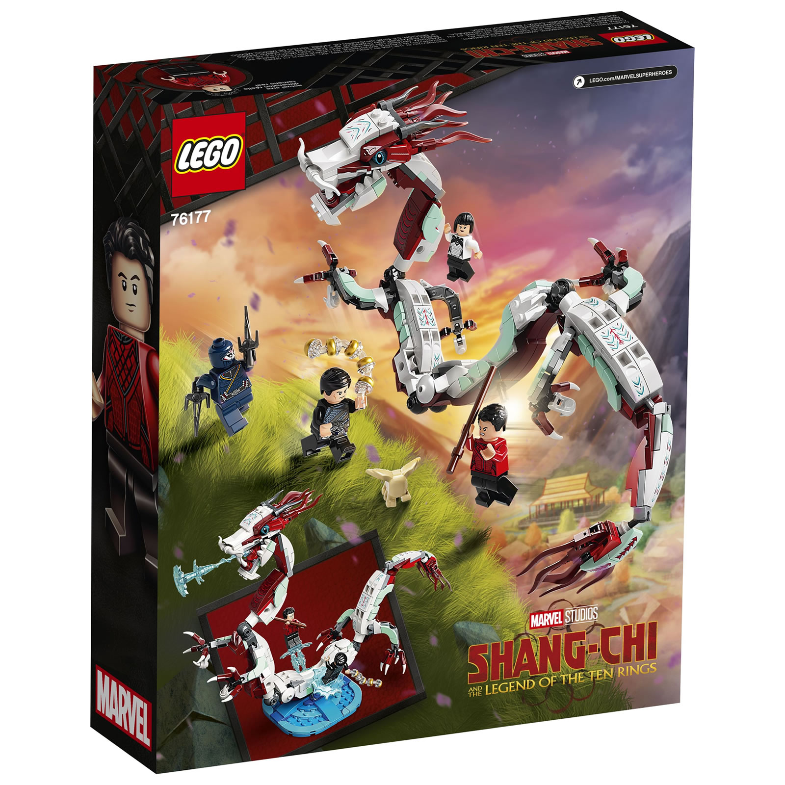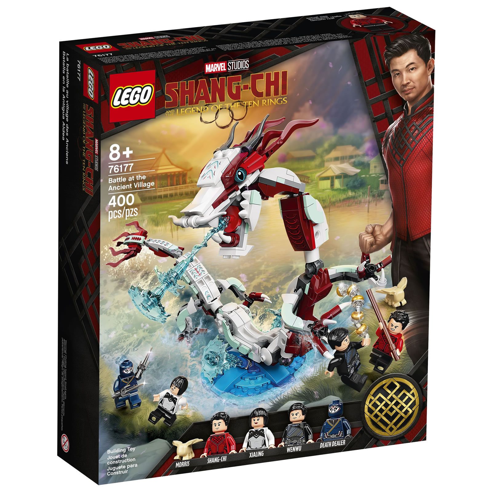 Dans la boite, 400 pièces pour assembler un dragon et cinq personnages : Shang-Chi, Morris, Xialing, Wenwu (Le Mandarin) et Death Dealer. Le prix public de ce set en France devrait être de 39.99 €, pas de date précise de mise en vente pour l'instant.