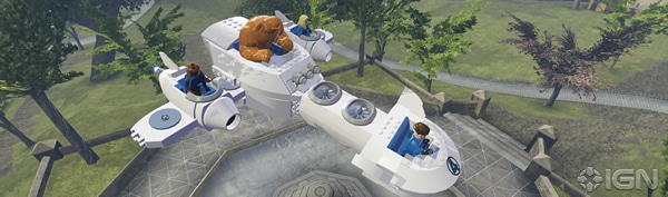 IGN en profite pour présenter quelques-uns des véhicules qui seront présents dans le jeu LEGO Marvel Super Heroes, avec dans l'ordre : Le Cloud Rider de Hawkeye, le Scooter de Deadpool, la Fantasticar, la Magnetomobile, le Pumpkin Chopper du Green Goblin, le SpiderCopter, et le X-Jet.