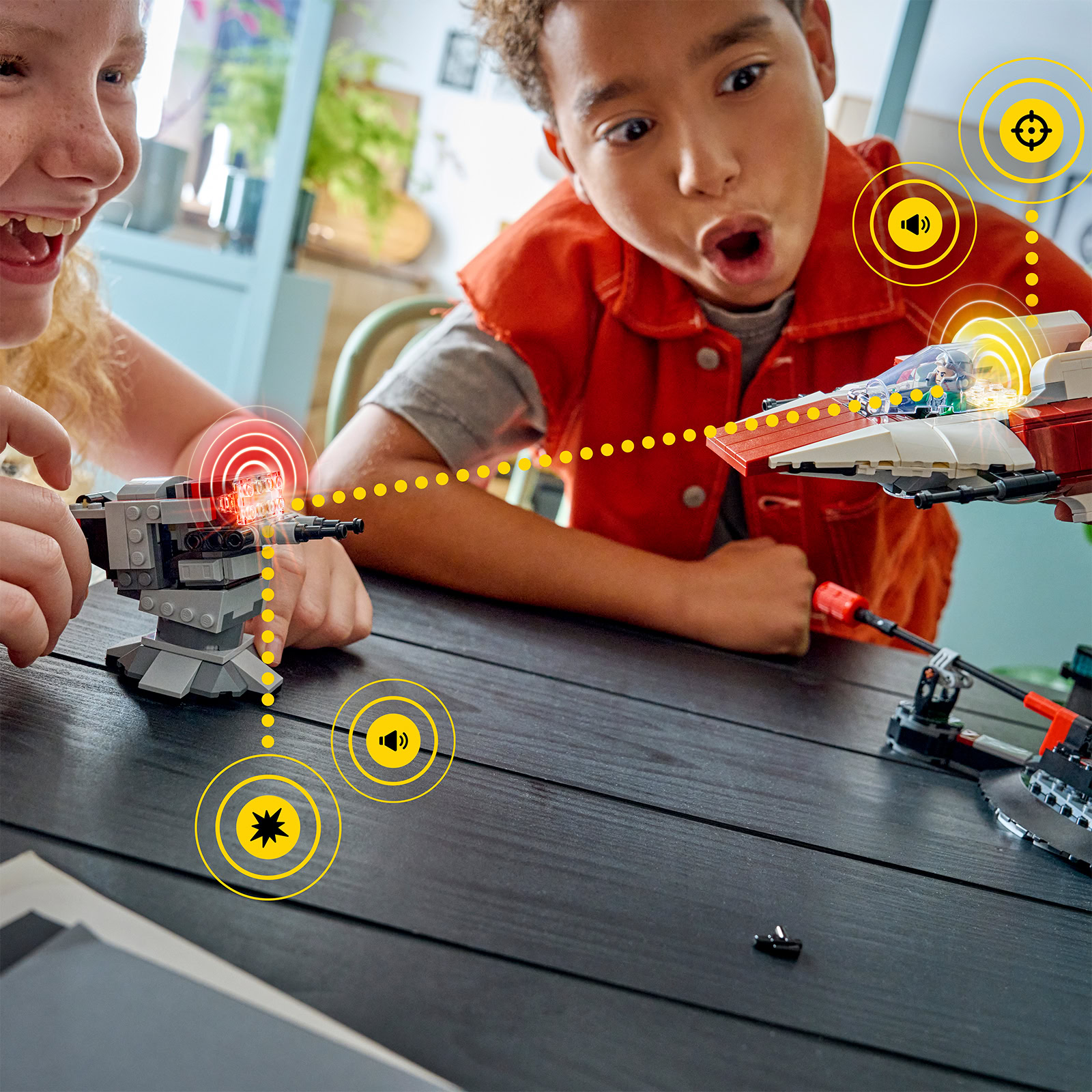 Trois nouveautés de la gamme LEGO Star Wars profiteront prochainement de ce nouvel écosystème, ils permettront tous les trois d'obtenir une SMART Brick avec son chargeur, un SMART Tag et une SMART Minifigurine et ils seront accessibles en précommande dès le 9 janvier 2026 avec une disponibilité annoncée pour le 1er mars 2026. Au programme, des bruits de réacteurs, de sabres laser et quelque séquences sonores emblématiques de la saga :