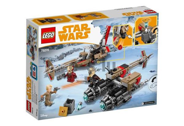 Ce n'est pas de la très haute résolution, mais c'est toujours mieux que rien : Le set LEGO Star Wars 75215 Cloud-Rider Swoop Bikes est maintenant référencé au catalogue de l'enseigne luxembourgeoise Electronic Shop et c'est donc l'occasion de découvrir les premiers visuels de cette boite de 355 pièces basée le film Solo : A Star Wars Story.