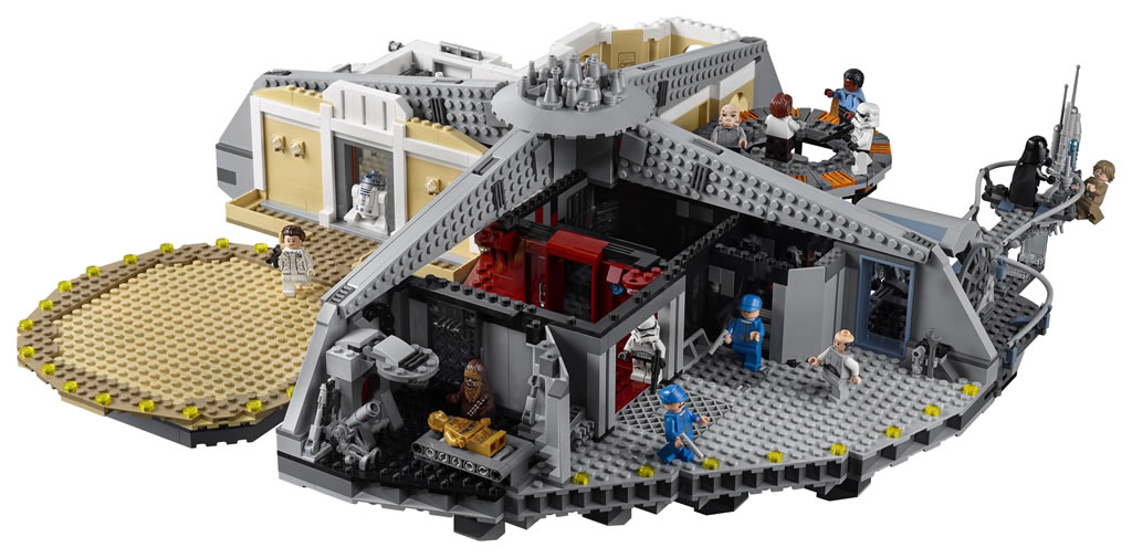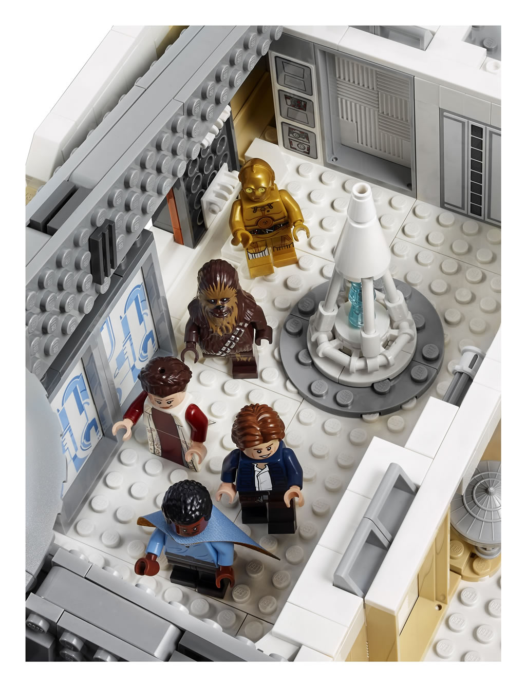 Vous pouvez arrêter de chercher à acquérir séparéement les sets 10123 Cloud City (2003), 7119 Twin-Pod Cloud Car (2002) et 7144 Slave I (2000), ce nouveau playset permet d'obtenir à la fois une représentation des lieux les plus emblématiques de la Cité des Nuages et les deux vaisseaux en question.