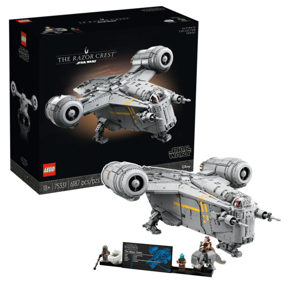 LEGO dévoile aujourd'hui officiellement la nouvelle référence qui rejoindra dès le 3 octobre prochain la gamme LEGO Star Wars Ultimate Collector Series : le set 75331 The Mandalorian Razor Crest, avec ses 6187 pièces, ses quatre figurines et son prix public fixé à 599.99 €.