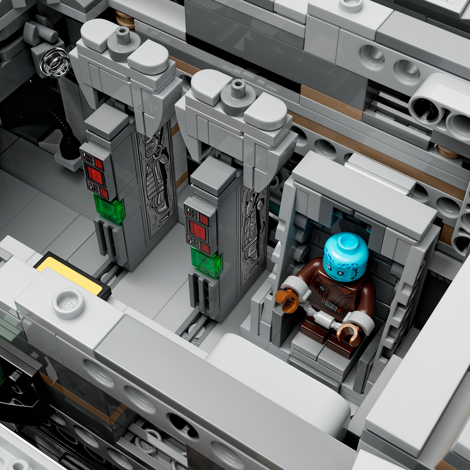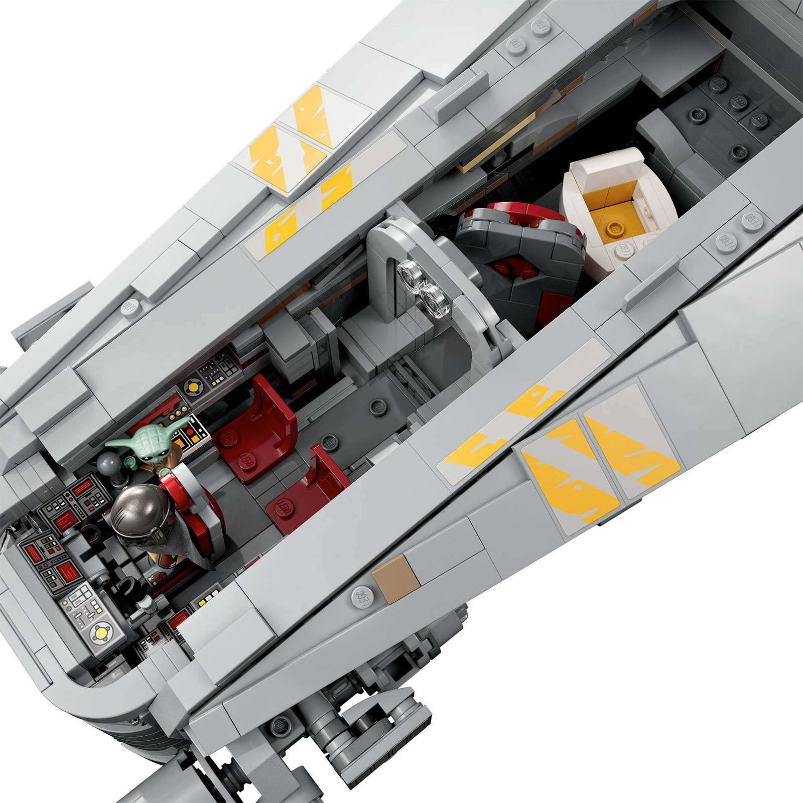 Cette nouvelle interprétation de l'ancien vaisseau de Din Djarin est évidemment plus ambitieuse que celle du set 75292 The Razor Crest (1023 pièces - 139.99 €) commercialisée depuis 2020 avec un niveau de détail plutôt impressionnant, une envergure de 72 cm de long sur 50 cm de large et 24 cm de haut et un intérieur facilement accessible. Le vaisseau est accompagné de quatre personnages : Le Mandalorian, Grogu dans son berceau high-tech, le Mythrol et le Ugnaught Kuill avec son Blurrg à construire.