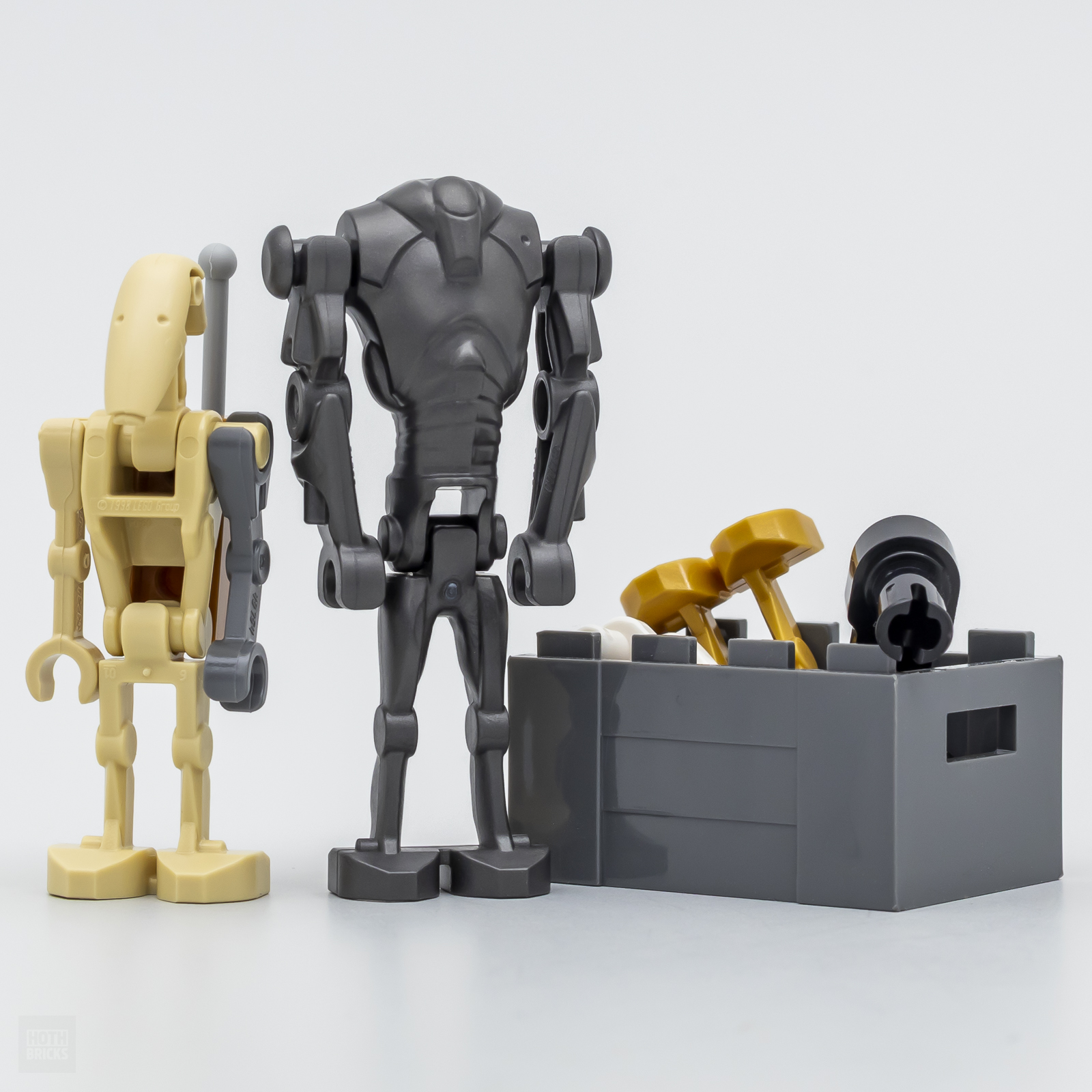 Le reste du casting de droïdes, soit 8 modèles, est à construire à l'aide de quelques pièces et tout n'est pas du meilleur tonneau à l'arrivée. Au programme, un Pit Droid, un Gonk Droid, un Buzz Droid, un Medical Droid, B2EMO (Bee-two), un WED Treadwell Repair Droid, un Mouse Droid et un Probe Droid.