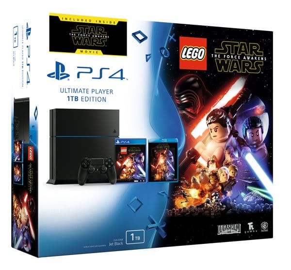 Dans la foulée, Sony annonce le lancement dès le 28 juin prochain d'un pack comprenant une console de jeu Sony PS4 1TB, une manette, le jeu vidéo LEGO Star Wars : The Force Awakens et le blu-ray du film.