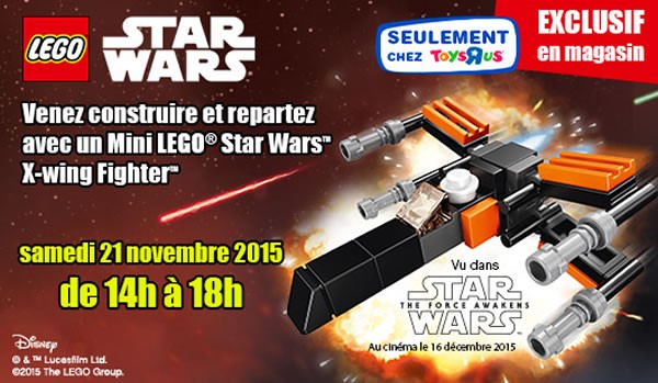 Le samedi 21 novembre de 14h00 à 18h00, vous pourrez donc obtenir le mini X-Wing de Poe Dameron ci-dessus dans votre magasin Toys R Us préféré.