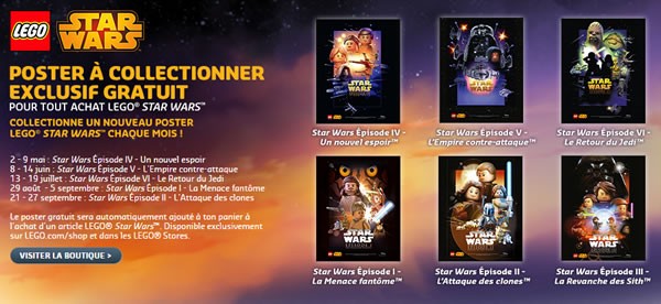 Attention aux conditions : Il faut commander au moins un produit de la gamme LEGO Star Wars pour obtenir l'affiche et dépenser au moins 30 € en produits LEGO Star Wars pour obtenir le polybag.