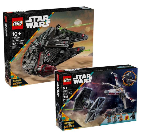 Les deux sets de la gamme LEGO Star Wars basés sur la série d'animation intitulée LEGO Star Wars : Rebuild the Galaxy dont les quatre épisodes seront diffusés dès le 13 septembre 2024 sur la plateforme Disney + sont maintenant disponibles en précommande sur la boutique officielle en ligne : 75389 The Dark Falcon (1579 pièces - 179,99 €) et 75393 TIE Fighter & X-wing Mash-up (1063 pièces - 109,99 €).