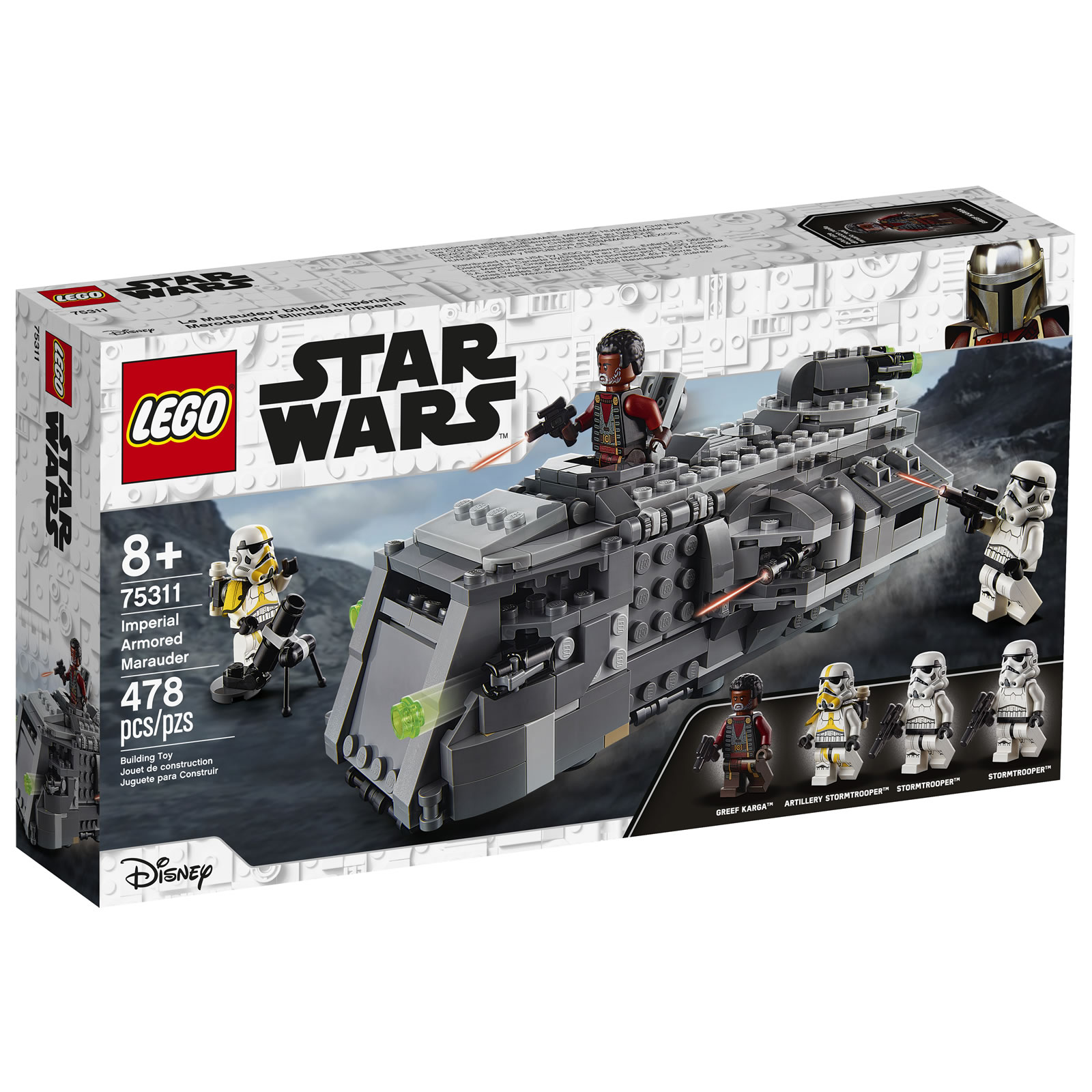 On s'intéresse aujourd'hui rapidement au contenu du set LEGO Star Wars 75311 Imperial Armored Marauder, une boite de 478 pièces qui nous permet d'assembler un transporteur blindé vu à l'écran dans le 12ème épisode de la série The Mandalorian.