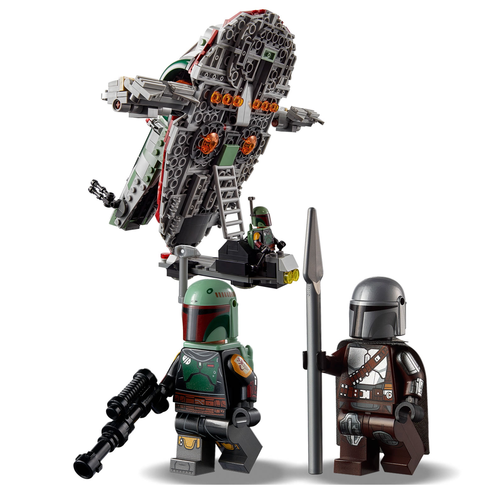 Du côté des deux minifigs fournies, le set étant inspiré de la série The Mandalorian diffusée sur la plateforme Disney +, on obtient logiquement Boba Fett et Din Djarin aka The Mandalorian.