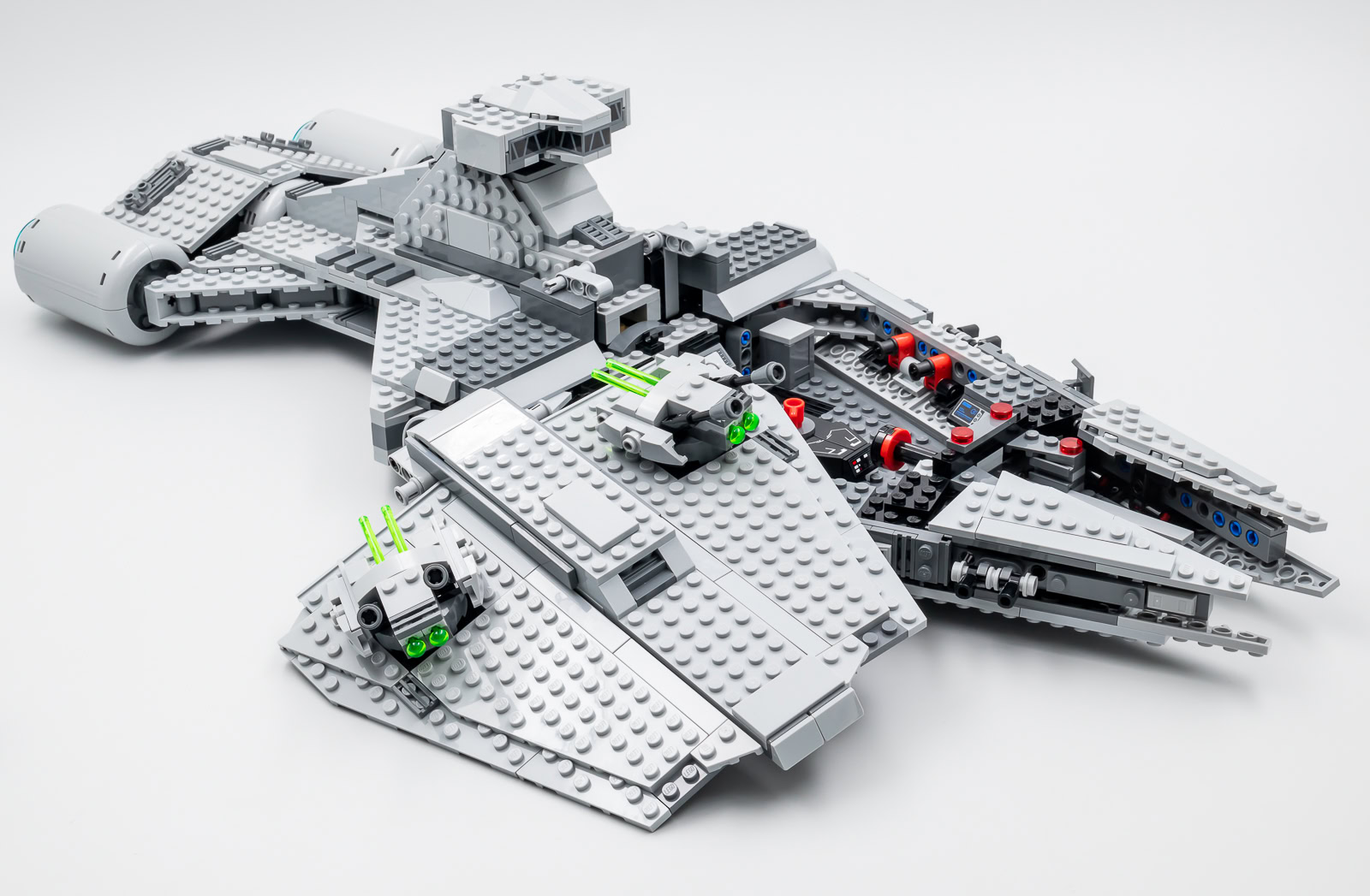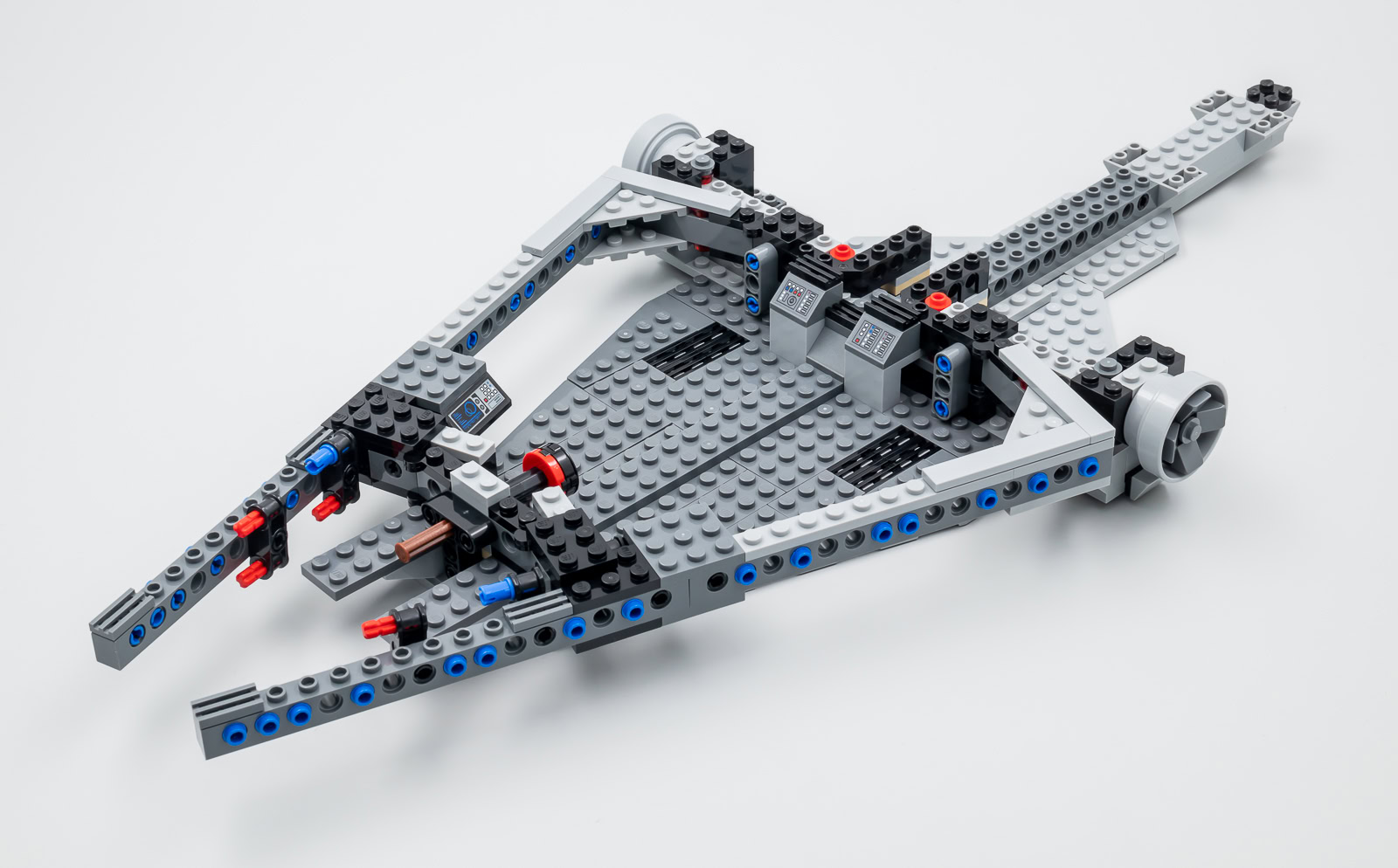 Ce vaisseau n'est donc pas une maquette pour fan exigeant, mais il ressemble quand même à celui vu dans la série et il perpétue la grande tradition de ces vaisseaux LEGO en nuances de gris avec tenons apparents issus de l'univers Star Wars. L'ensemble est très solide, notamment grâce à sa structure qui fait appel à de nombreuses poutres Technic, et il est facilement manipulable. Ce jouet est bien conçu et il devrait résister aux assauts des fans les plus téméraires.