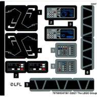 Il manque quelques équipements pour masquer les pins latéraux qui retiennent les panneaux inférieurs de la coque mais la table holographique placée au centre de la pièce est très ressemblante grâce aux quatre stickers prévus. Je sais que les tenons sur le sol facilitent la mise en place des minifigs, mais j'aurais apprécié une finition plus aboutie de l'espace intérieur en recouvrant par exemple la surface de Tiles pour bien marquer la différence avec la coque du vaisseau qui reste rugueuse.