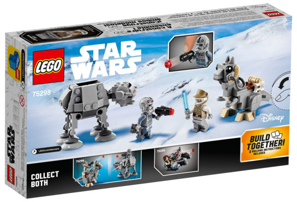 Pour le reste, aucune surprise, les deux autres boites étant de petits sets sans prétentions avec d'un côté un X-wing ultra-simplifié destiné aux plus jeunes et un set de la gamme Microfighters qui propose un AT-AT aux prises avec un Tauntaun à assembler. C'est le propos de cette gamme, donc on peut saluer l'effort de nous proposer une créature à base de briques même si le résultat est un peu grossier.