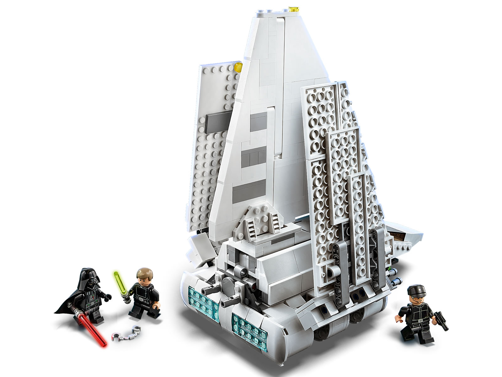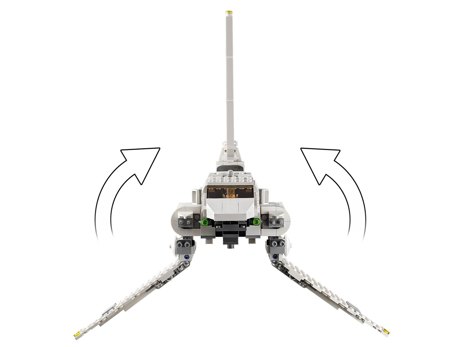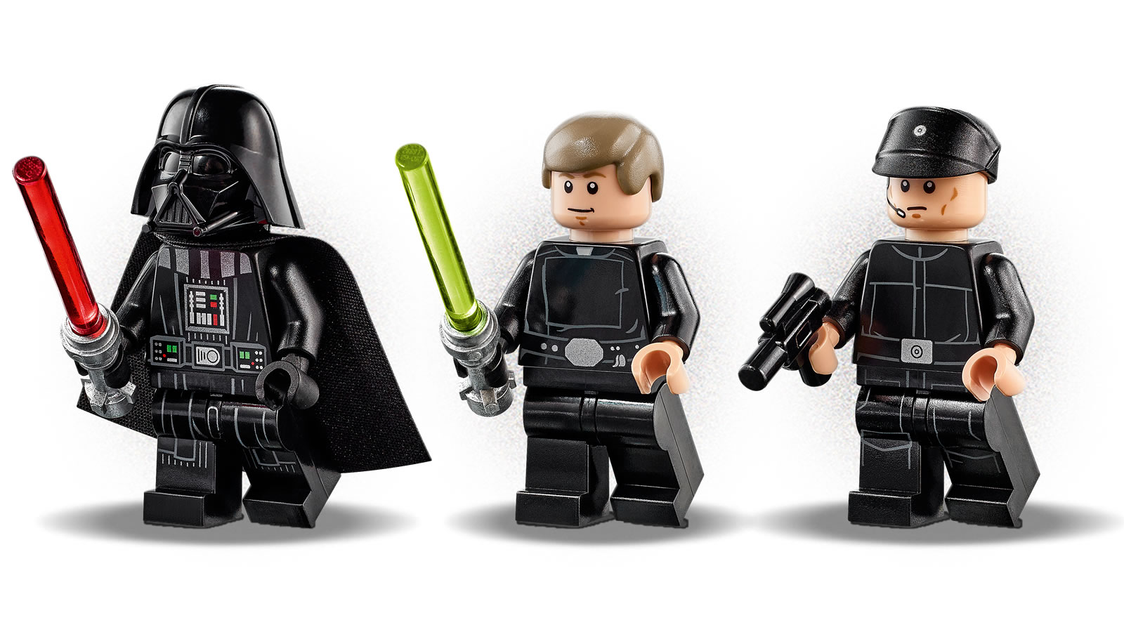 L'accès à l'intérieur de la navette se fait par le dessus en basculant l'aileron central, Luke Skywalker a bien un sabre vert malgré la présence d'une pièce bleue sur le visuel du set qui apparait dans les livrets d'instructions des sets de janvier, pas de bras tampographiés pour Darth Vader et une échelle à peu près similaire à celle du vaisseau du set 75094 Imperial Shuttle Tydirium (937