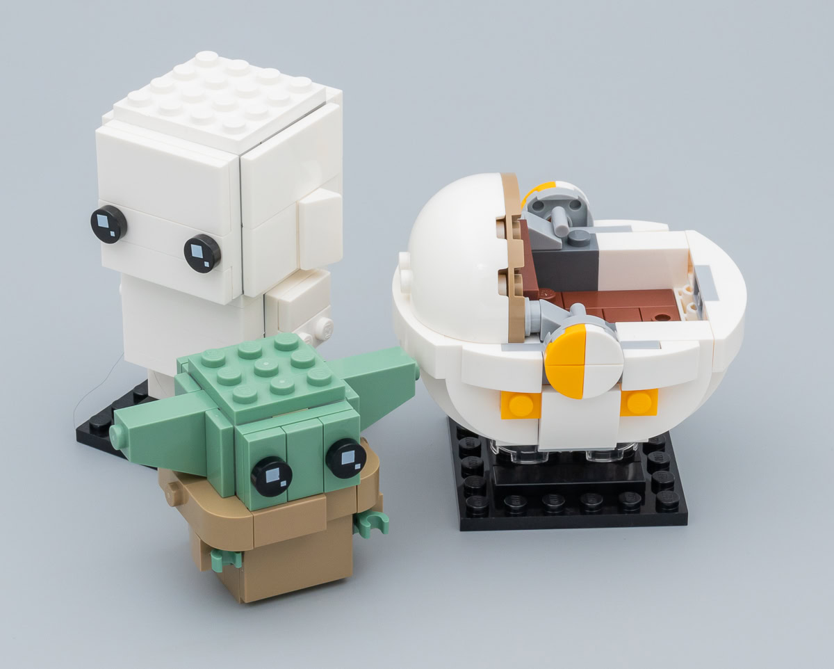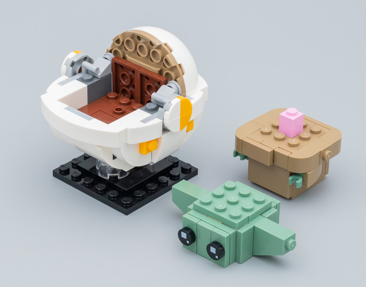 Si vous avez envie de partager l'assemblage du set avec un ami, vous pouvez le faire : les sachets de pièces et les instructions nécessaires pour chacun des deux personnages sont indépendants. Ne nous voilons pas la face, il faudra certainement tirer au sort qui aura le privilège d'assembler la star du set qui passe plutôt bien à la moulinette BrickHeadz. Cerise sur le gâteau, Baby Yoda est livré avec son berceau flottant duquel il peut être retiré pour profiter vraiment de la figurine. Le rapport de taille entre le berceau et la créature n'est évidemment pas bon, mais c'est le côté Chibi du concept qui veut ça.