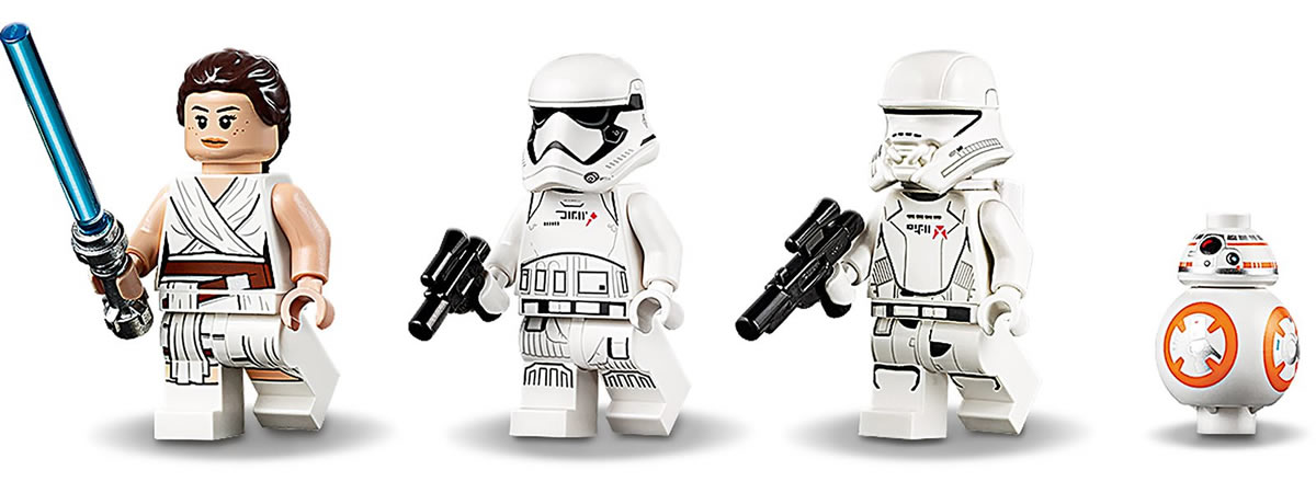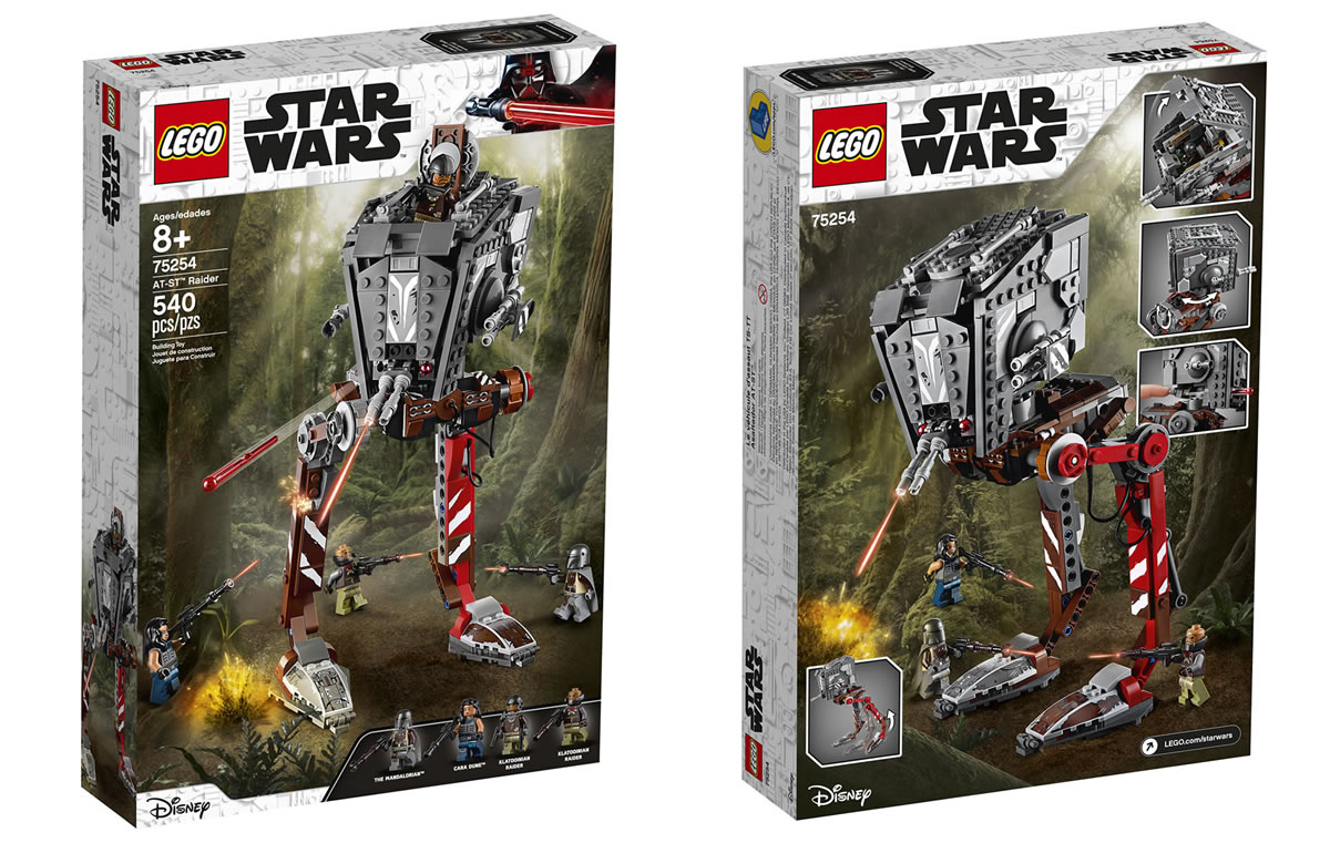 Parmi les huit boites annoncées, cinq sont basées sur le film The Rise of Skywalker et le set 75254 AT-ST Raider est inspiré de la série The Mandalorian qui sera diffusée sur la plateforme Disney +.