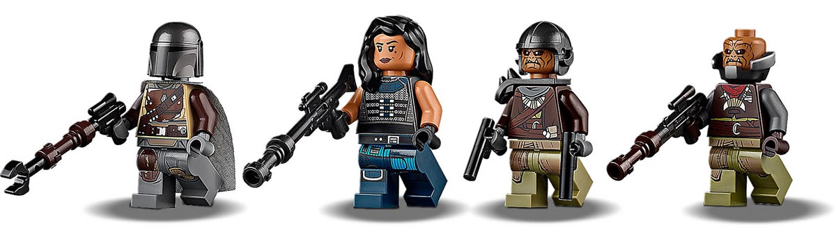 Le Mandalorian est incarné à l'écran par l'acteur Pedro Pascal (Game of Thrones, Narcos) mais LEGO a certainement reçu la consigne de ne pas fournir de visage au personnage dans ce premier produit dérivé. Il faudra sans doute attendre un autre set basé sur la série pour obtenir une version avec un vrai visage sous le casque. Pour le reste, la tenue du personnage est conforme à ce que Disney en a dévoilé pour l'instant dans le Trailer et les quelques teasers et autres affiches déjà disponibles.