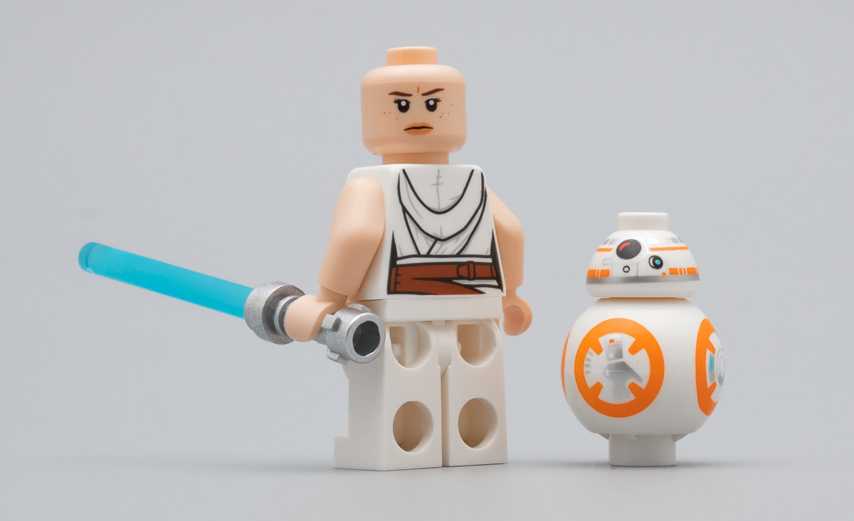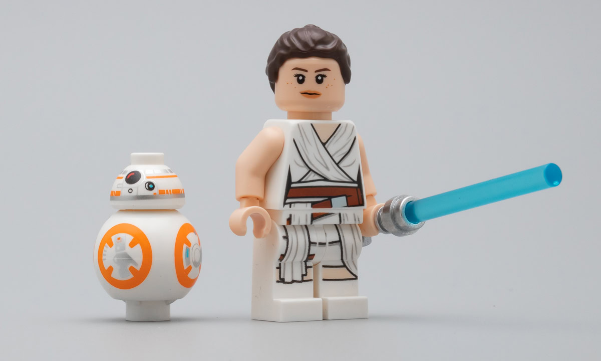 La minifig de Rey est exclusive à ce set même si elle réutilise le visage déjà fourni depuis 2015 dans le set 75099 Rey's Speeder puis dans une dizaine d'autres boites qui mettent en scène le personnage.