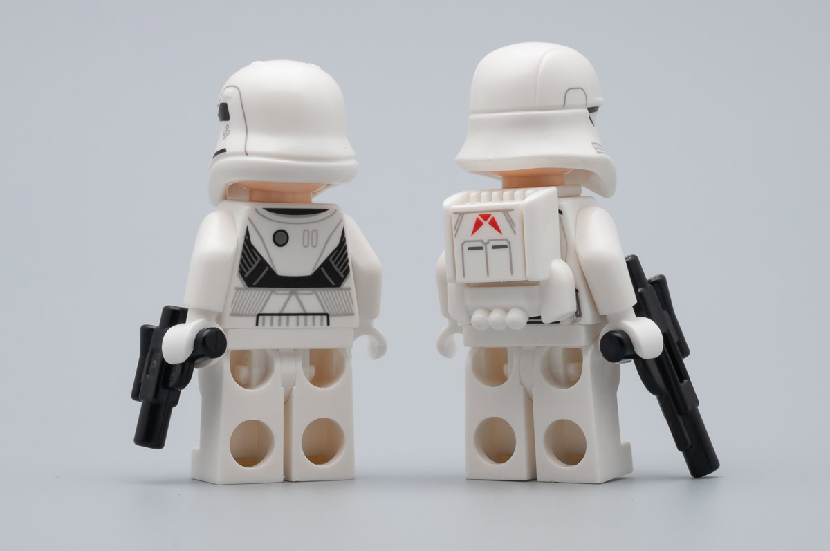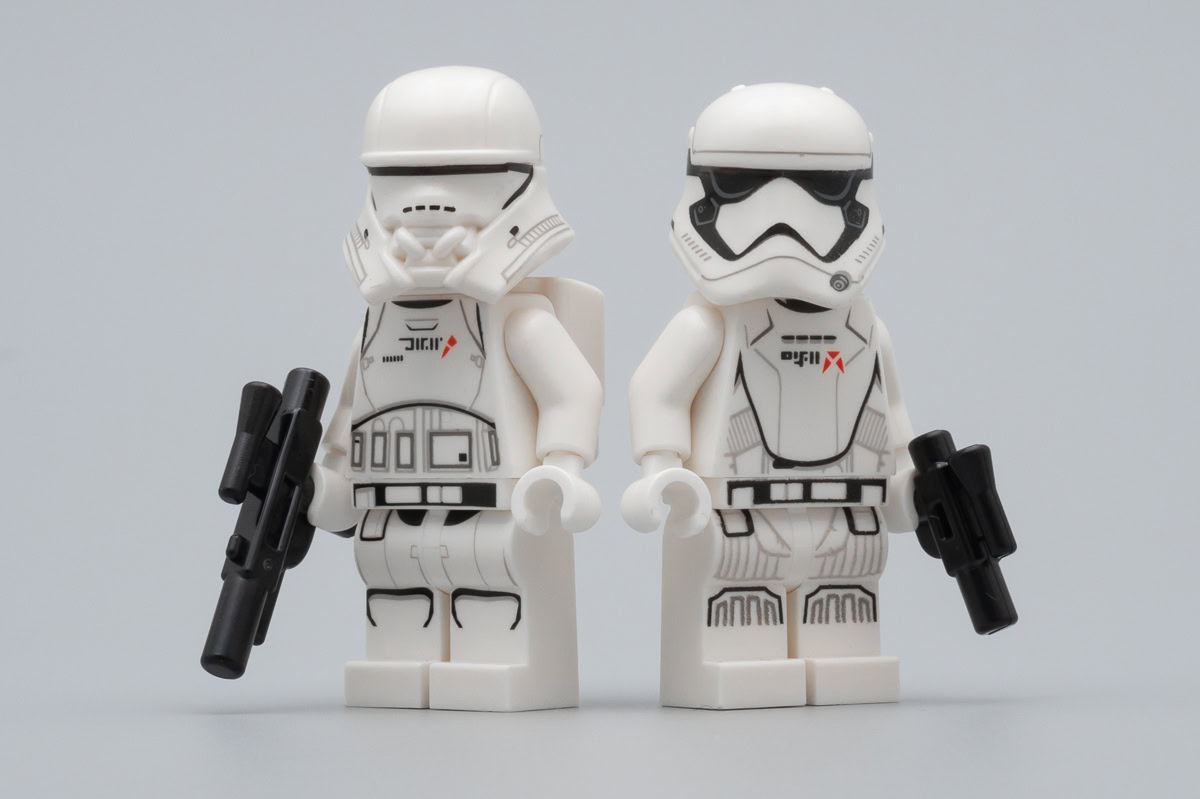 Les deux soldats du First Order, un Jet Trooper et un Treadspeeder Driver, nous permettent d'obtenir quelques pièces inédites joliment tampographiées. L'accessoire dorsal du Jet Trooper avec sa pièce amovible est une belle évolution du montage habituel à base de clips divers et variés.