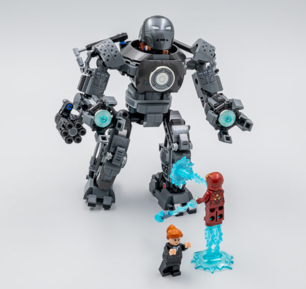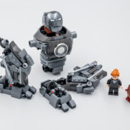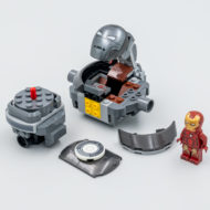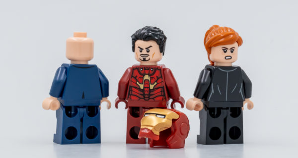 La version d'Iron Man avec son armure Mark 85 n'est pas inédite, c'est celle qui était déjà livrée en 2019 dans le set 76131 Avengers Compound Battle. Le personnage est ici équipé d'un bouclier recouvert de stickers, dommage pour l'absence de tampographie. LEGO fournit une chevelure additionnelle pour pouvoir vraiment utiliser le visage habituel de Tony Stark.