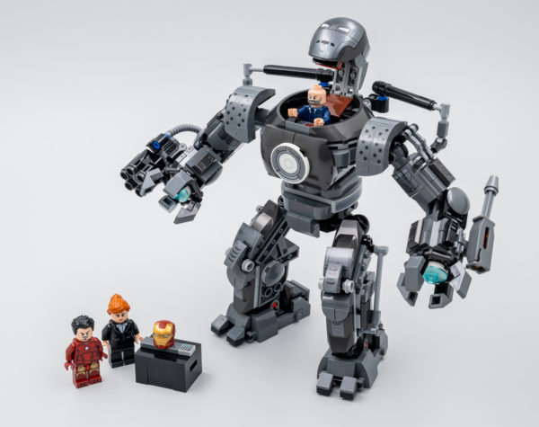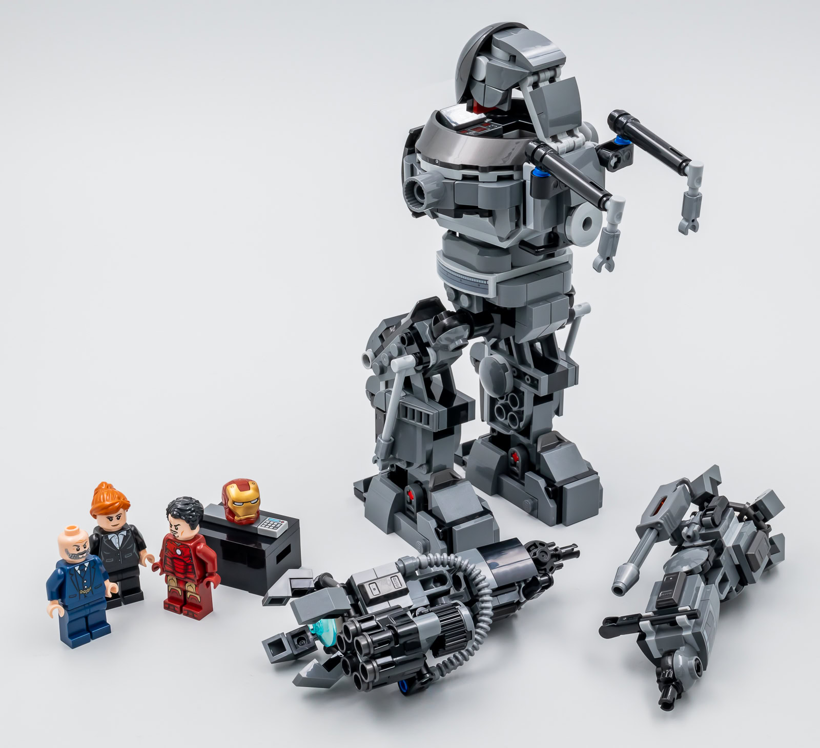 Le set met en scène Iron Monger, l'armure d'Obadiah Stane, et permet en principe de reproduire l'affrontement qui a lieu entre le premier méchant du MCU et Tony Stark, le tout sous les yeux de Pepper Potts. Ceux qui se souviennent du film auront remarqué que rien n'est à l'échelle dans cette boite : Iron Monger est beaucoup trop grand, Obadiah Stane nage dans son poste de pilotage et la minifig d'Iron man fait pâle figure face au mech. Le designer aura sans doute voulu pouvoir se permettre un niveau de détail acceptable et l'armure a inévitablement pris du volume au passage. Je préfère cette approche à celle qui nous aurait imposé un mech rachitique et trop peu détaillé pour convaincre.