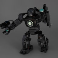 Pour le reste, l'armure est dotée de tous les attributs vus à l'écran, vérins dorsaux et armement inclus. La Gatling présente sur la main droite du mech est ici plutôt bien reproduite, le lance-missiles placé sur la main gauche est résumé à un système d'éjection de pièces qui est à mon avis un peu sommaire.