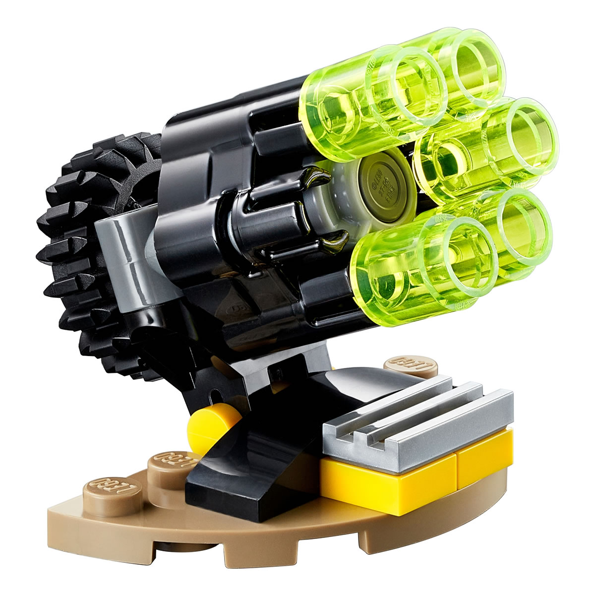 Le lance-missile placé sur la tourelle arrière est une nouveauté 2020 livrée aussi dans les sets Marvel 76153 Helicarrier et Ninjago 71703 Storm Fighter Battle, tout comme la flèche avec son embout en caoutchouc qui est une variante de la version habituelle. Les possibilités d'intégration de ce nouvel élément seront meilleures que celles du canon Technic classique (réf. 6064131) souvent utilisé jusqu'ici et c'est une bonne nouvelle pour tous ceux qui n'aiment pas sacrifier l'apparence d'un modèle pour un peu de jouabilité.