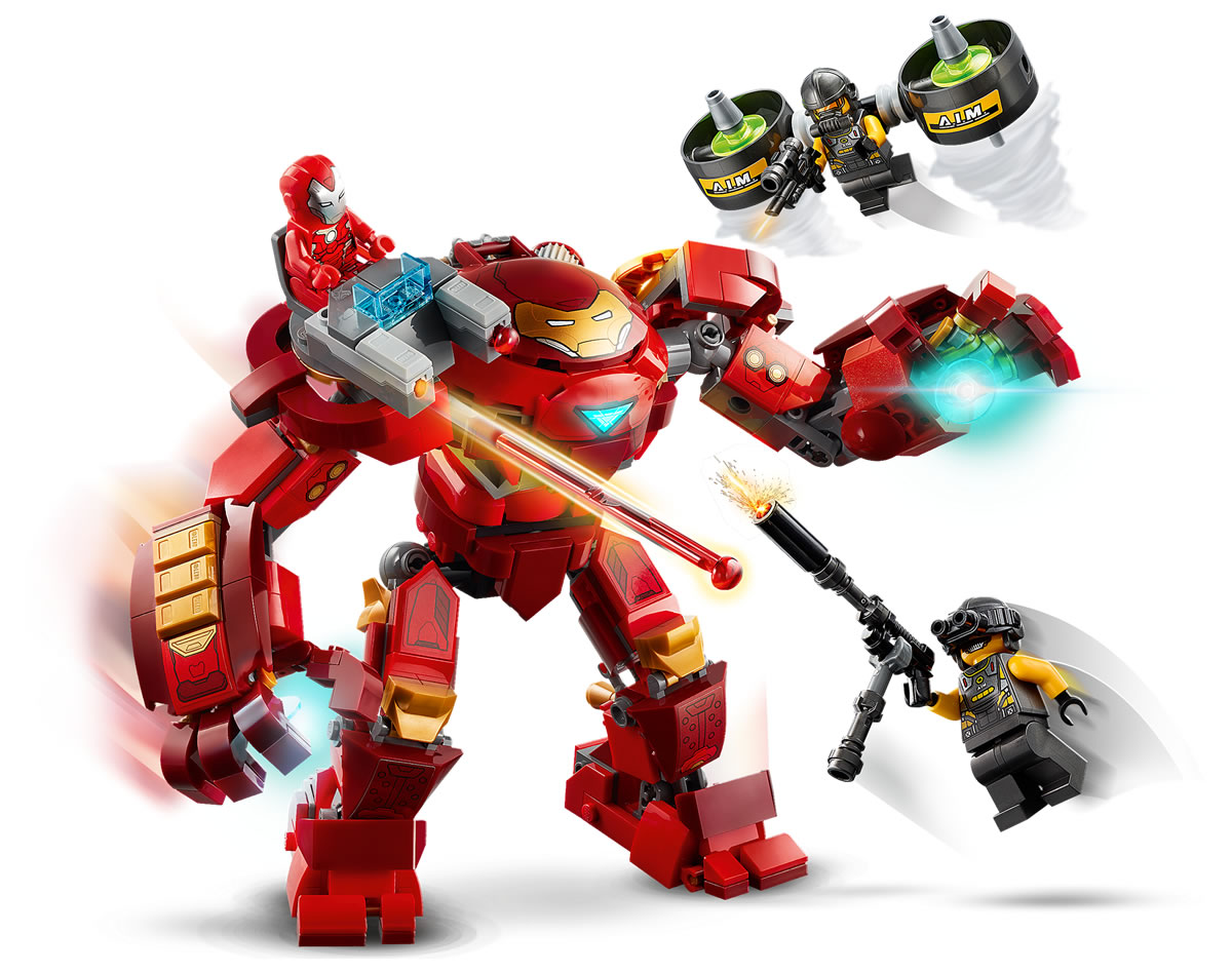 Les méchants Outriders du set 76125 sont ici remplacés par deux agents de l'A.I.M. pour respecter les forces en présence dans la version 2020 de la gamme, vaguement inspirée du jeu vidéo Marvel's Avengers dont la sortie est attendue pour la rentrée prochaine. On retrouve en effet d'autres exemplaires de ces agents sous les ordres de MODOK dans les boites déjà commercialisées ou à venir : 76164 Iron Man Hulkbuster Versus A.I.M. Agent, 76166 Avengers Tower Battle, 76142 Avengers Speeder Bike Attack, 76143 Avengers Truck Take-down, 76153 Helicarrier et 40418 Falcon & Black Widow Team-Up.