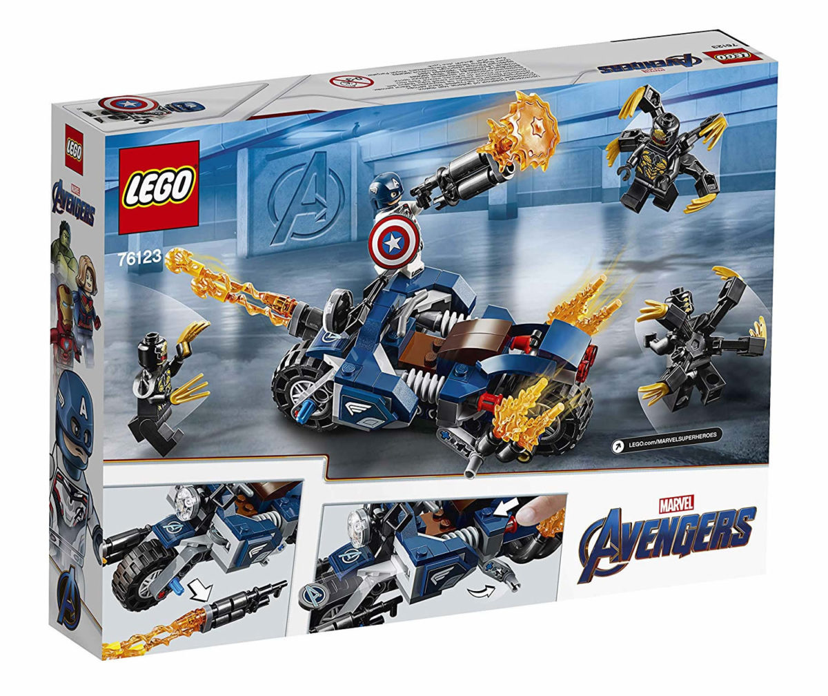 Les fiches des sets 76123 Captain America : Outrider Battle (167 pièces), 76125 Iron Man Armor Room (524 pièces) et 76131 Avengers Compound Battle (699 pièces) sont également ligne chez amazon mais sans visuels particuliers pour l'instant.