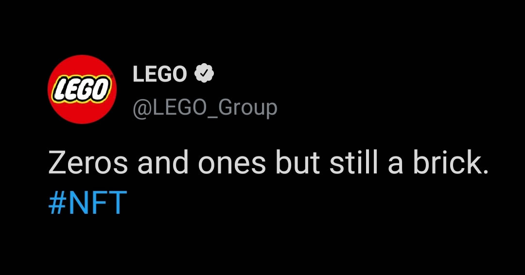 Poisson d'avril publié trop tôt par erreur ou tentative de surfer sur une tendance qui ne date pas d'hier mais qui trouve un regain de popularité actuellement ? Difficile à dire même si je penche plus pour la blague publiée trop tôt que pour une arrivée tardive de LEGO sur ce marché que beaucoup considèrent comme une arnaque numérique qui ne profite réellement qu'à ceux qui en ont les clés comme par exemple les plateformes de certification et les marketplaces de revente de ces jetons virtuels.