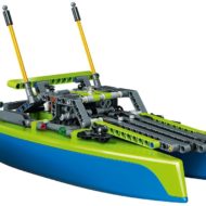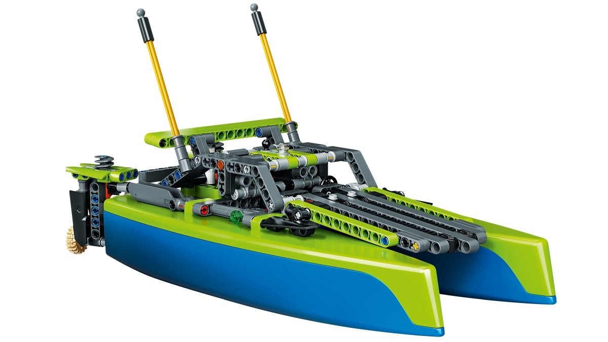 On y retrouve les petites boites habituelles qui feront plaisir aux jeunes fans qui découvrent la gamme, une grue mobile parce qu'il faut toujours une grue jaune au catalogue LEGO, et un catamaran qui flotte vraiment comme l'indique la mention apposée sur l'emballage.