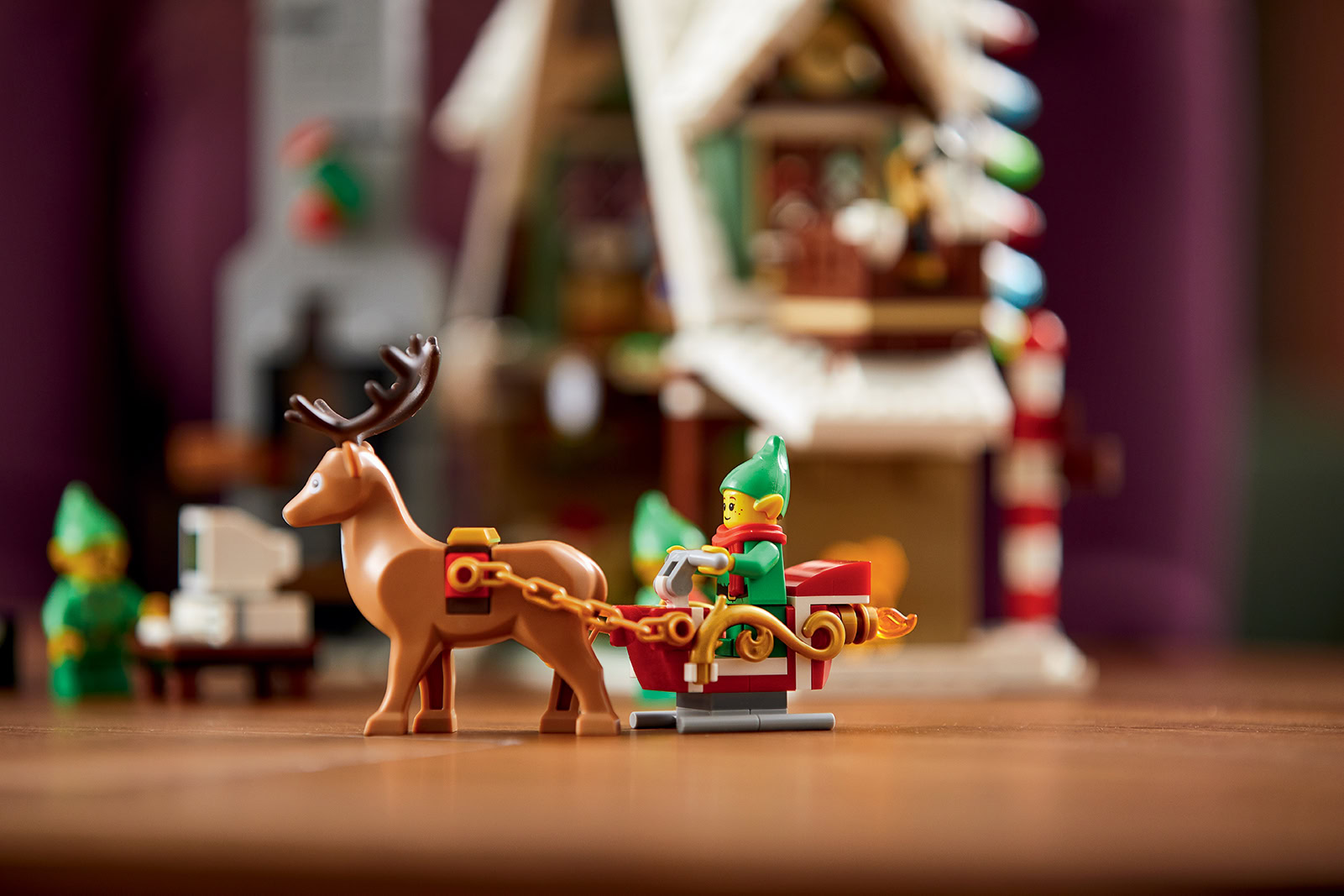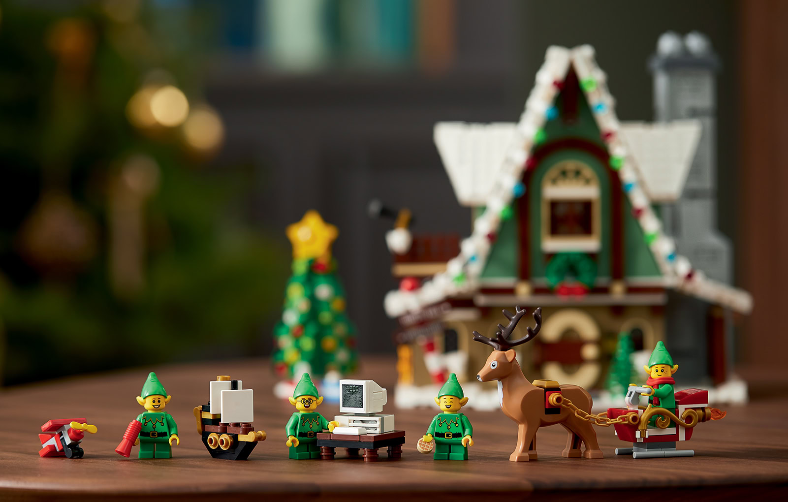 On reste dans la thématique habituelle avec une construction enneigée, un distributeur de gaufres intégré à la cheminée, un sapin décoré, des cadeaux et des jouets parmi lesquels le piano et le bateau pirate qui rendent hommage aux récents sets de la gamme LEGO IDEAS, un renne avec son traîneau et quatre elfes. En bonus, LEGO fournit une brique lumineuse pour éclairer la chambre des elfes qui dispose de son côté d'une fonctionnalité permettant de faire basculer les lits superposés pour éjecter les minifigs.