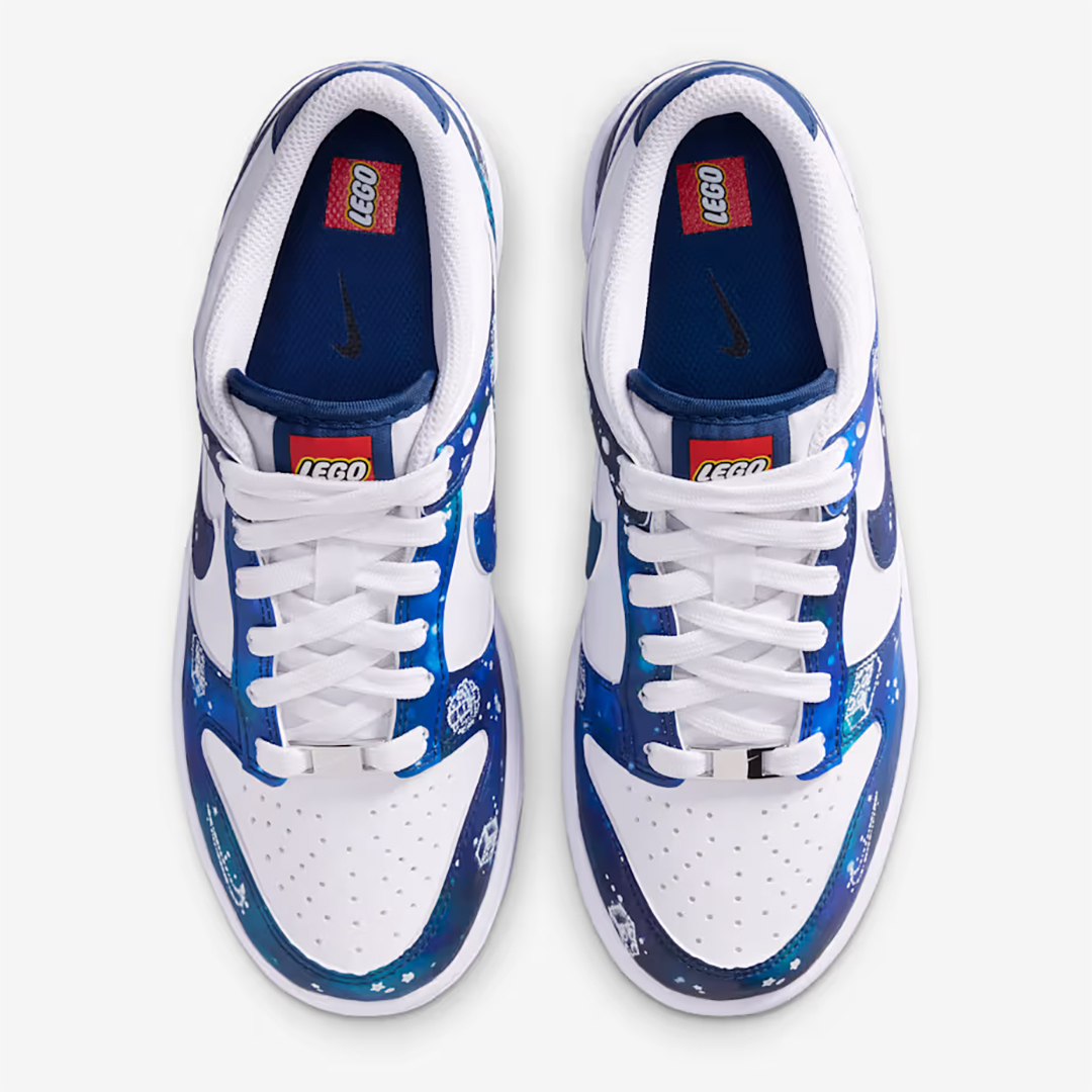 Pour ceux que ça intéresse, NIKE propose une nouvelle paire issue de la collaboration en cours avec LEGO et il s'agit d'une paire de Dunk Low de la collection Galaxy disponible dès à présent en version "ado" avec des pointures du 35.5 au 39 à 104,99 € ainsi qu'en version enfant avec des pointures du 27.5 au 35 vendue 80 €. Pas de pointures pour adultes.