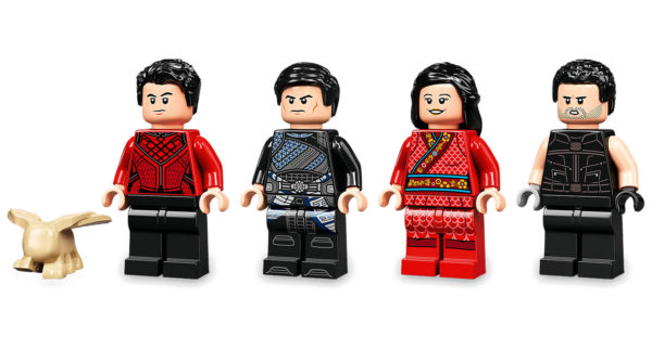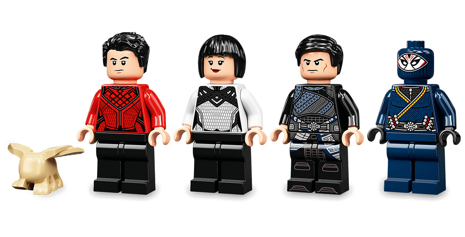 Dans le set 76176 Escape From The Ten Rings : Shang-Chi, Morris (un Dijiang), Wenwu (Le Mandarin), Katy et Razor Fist. Dans le set 76177 Battle at the Ancient Village : Shang-Chi, Morris, Xialing, Wenwu (Le Mandarin) et Death Dealer.