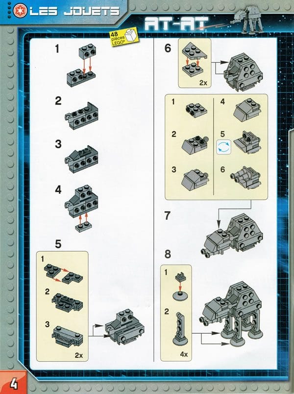 Pour ceux que ça intéresse, vous trouverez ci-dessous, les instructions de montage de l'AT-AT de 48 pièces offert ce mois-ci (Fichier haute résolution disponible sur ma galerie flickr).