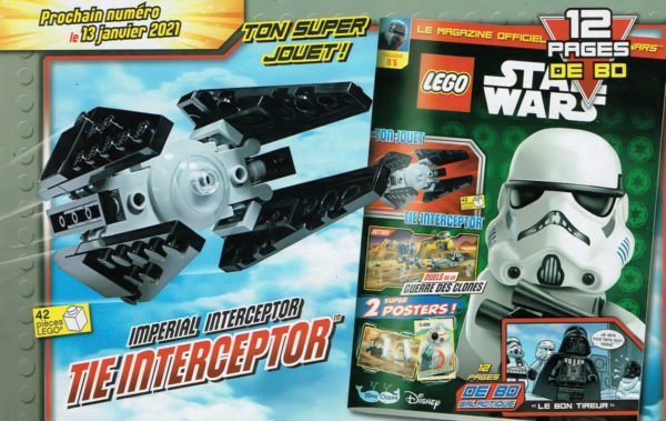 Le prochain numéro de ce magazine arrivera en kiosque en janvier 2021 et il sera accompagné d'un Tie Interceptor de 42 pièces. La version proposée me semble plus réussie que celle du set 40407 Death Star II Battle offert en mai 2020 chez LEGO mais je continue à préférer celle du polybag 6965 Tie Interceptor datant de 2004.