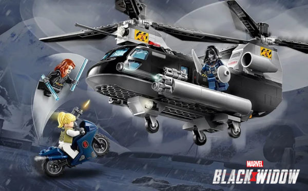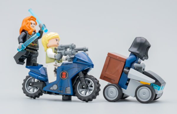 Petit rappel pour ceux qui auraient déjà oublié : LEGO a bien produit un set basé sur le film Black Widow actuellement en salles, la référence 76162 Black Widow's Helicopter Chase avec ses 271 pièces qui permettent d'assembler un hélicoptère, une moto et un quad, et ses trois minifigs : Black Widow (Natasha Romanoff), Yelena Belova et Taskmaster.
