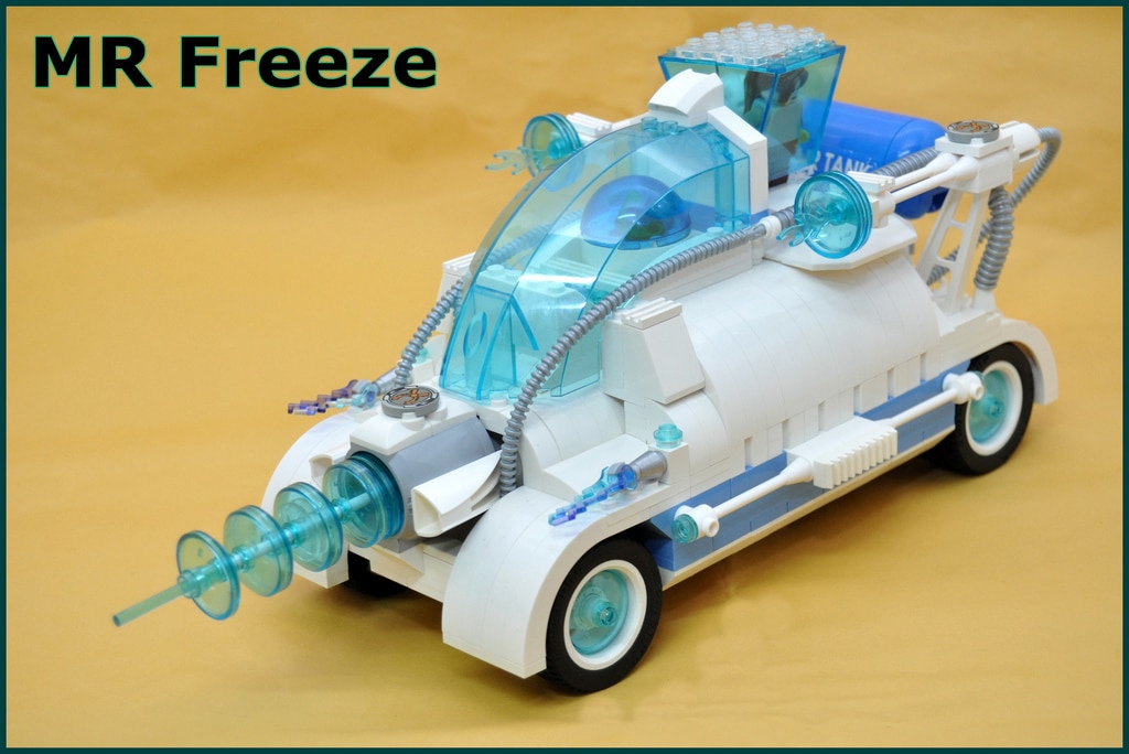 Gilcélio présente ainsi une Freezemobile vraiment originale, à la fois rétro et futuriste, avec son canon vu 100 fois dans tous ces vieux films de science-fiction des années 70, son cockpit trans-blue qui évoque le froid et la glace et sa femme Nora cryogénisée dans son caisson.