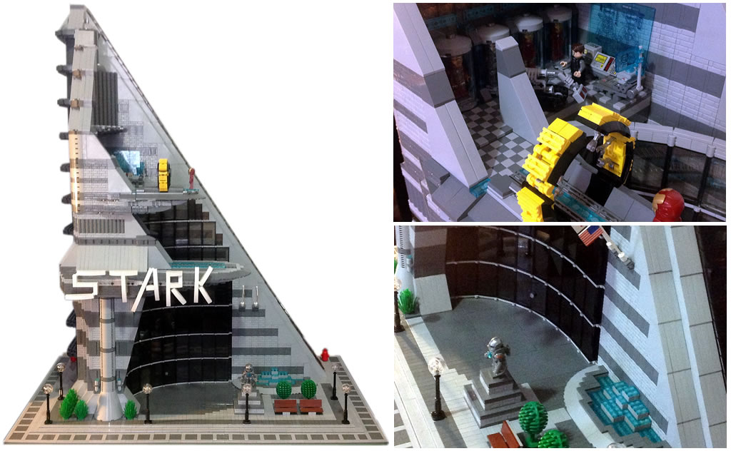 Le monsieur présente sa reproduction de la Stark Tower, et même si les proportions du bâtiment vu dans les films ne sont pas respectées à la lettre, l'ensemble mérite un coup d'oeil pour les nombreux détails à découvrir avec notamment la scène de l'arrivée d'Iron Man sur la plateforme extérieure ou le labo de Tony Stark.