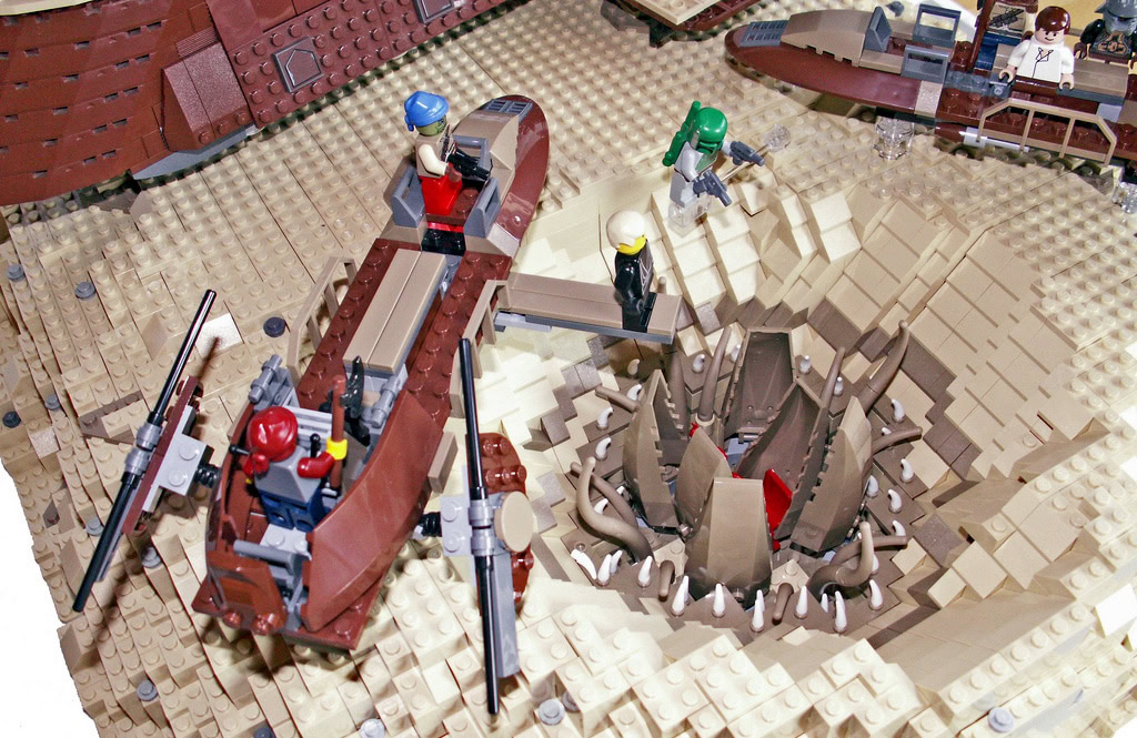 C'est au tour de la fosse du Sarlacc d'être présentée dans une mise en scène incluant la barge de l'infâme Jabba et deux Desert Skiffs patrouillant autour de la fosse abritant la terrible créature dévoreuse de Bounty Hunters.
