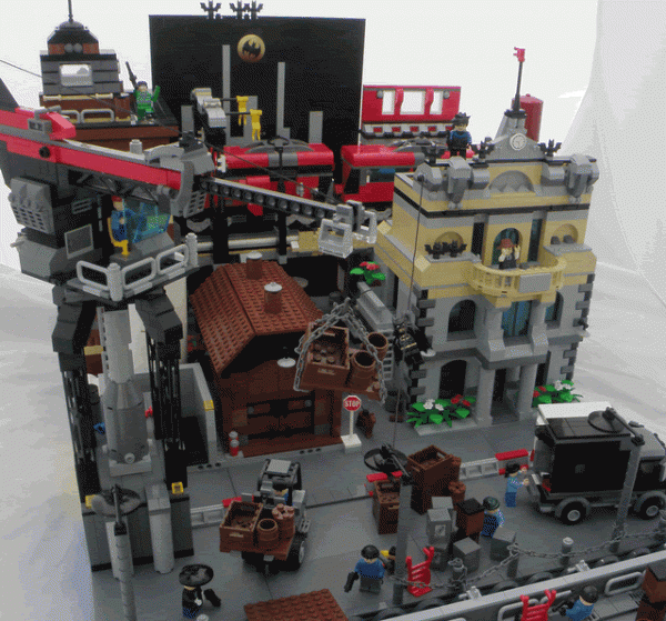 Belle réalisation mélangeant bâtiments, véhicules (camion, métro aérien Gotham Express) et même une grue portuaire très réussie. La scène est vivante, et bénéficie d'une belle profondeur permettant un effet de perspective intéressant (Les photos ne rendent d'ailleurs pas hommage à ce qui aurait pu être fait en matière de perspective).