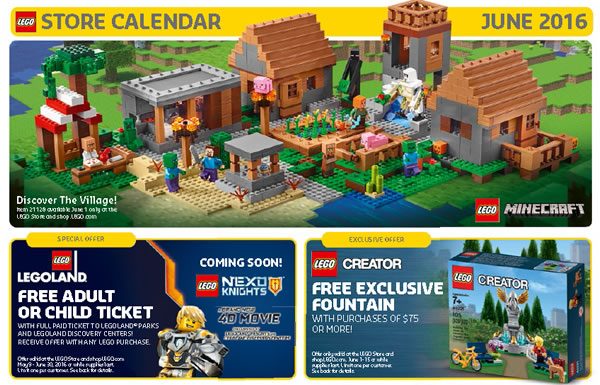 Le Store Calendar US de juin est disponible (à télécharger au format PDF à cette adresse) et on y découvre le produit offert du 1er au 15 juin 2016 : Il s'agit du set LEGO Creator 40221 Fountain que les clients américains de LEGO pourront obtenir à partir de 75$ d'achat.