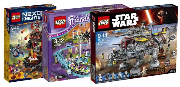 Les sets 70321 General Magmar's Siege Machine of Doom (Nexo Knights) et 41130 Amusement Park Roller Coaster (Friends) trouveront quant à eux probablement leur public au-delà des fans de leurs gammes respectives. Les trucs qui roulent et qui lancent des projectiles et les circuits trouvent toujours leur public...