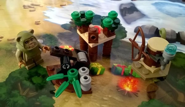 Jusqu'ici tout va bien : Deux séquences thématiques : Tatooine et Endor avec deux minifigs sympas et quelques mini-trucs plus pou moins réussis. Le mini Sandcrawler est le seul machin qui trouve grâce à mes yeux, on le reverra probablement sur flickr dans des mises en scène où l'on aperçoit l'engin "au loin sur les dunes de Tatooine".