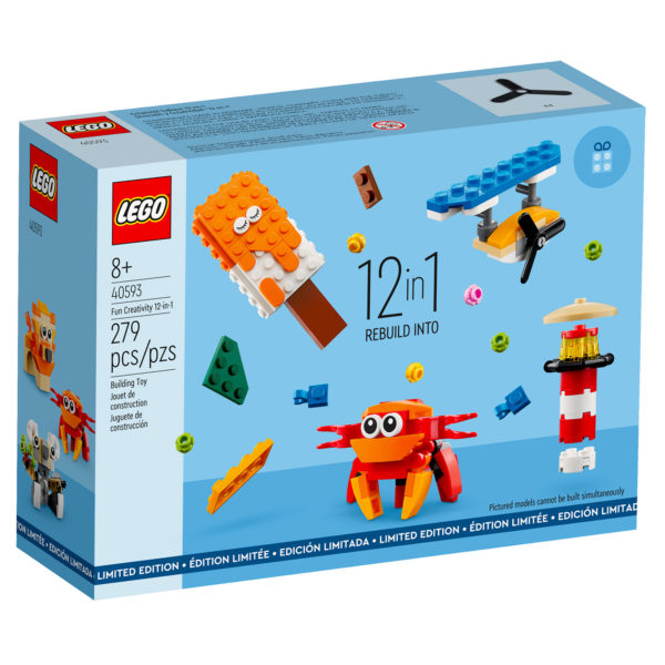 Ceux qui avaient apprécié le set 40411 Creative Fun 12-in-1 offert par LEGO durant l'été 2020 seront ravis d'apprendre qu'un nouveau produit promotionnel basé sur le même principe sera prochainement offert sur la boutique officielle en ligne et dans les LEGO Stores : il s'agit de la référence 40593 Fun Creativity 12-in-1 qui permettra comme l'indique l'intitulé du produit de construire une douzaine de mini-modèles et plus encore si vous avez un peu de talent et d'imagination.