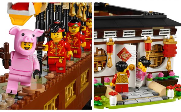 Ces deux boites mettront en scène des traditions liées au passage à la nouvelle année comme les Dragon Dancers accompagnés pour l'occasion d'un homme déguisé en cochon (2019 sera l'année du cochon selon l'astrologie chinoise) et les rassemblements familiaux qui ont lieu à l'occasion des festivités du nouvel an chinois (à droite sur le visuel ci-dessus) avec une jolie maison traditionnelle et quelques minifigs.