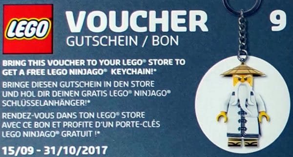 Premier produit dérivé connu, le porte-clés ci-dessous avec une version inédite de Sensei Wu qui sera offert du 15 septembre au 31 octobre 2017 à ceux qui se présenteront dans un LEGO Store munis du coupon N°9 du calendrier officiel LEGO 2017.
