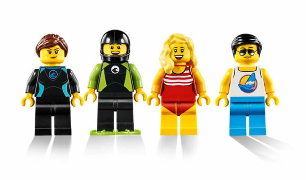 Dans ce blister de 45 pièces, quatre minifigs dont un personnage exclusif et quelques accessoires dont un chariot de glaces, un parasol et un perroquet en deux couleurs lui aussi présenté comme exclusif à ce petit set.